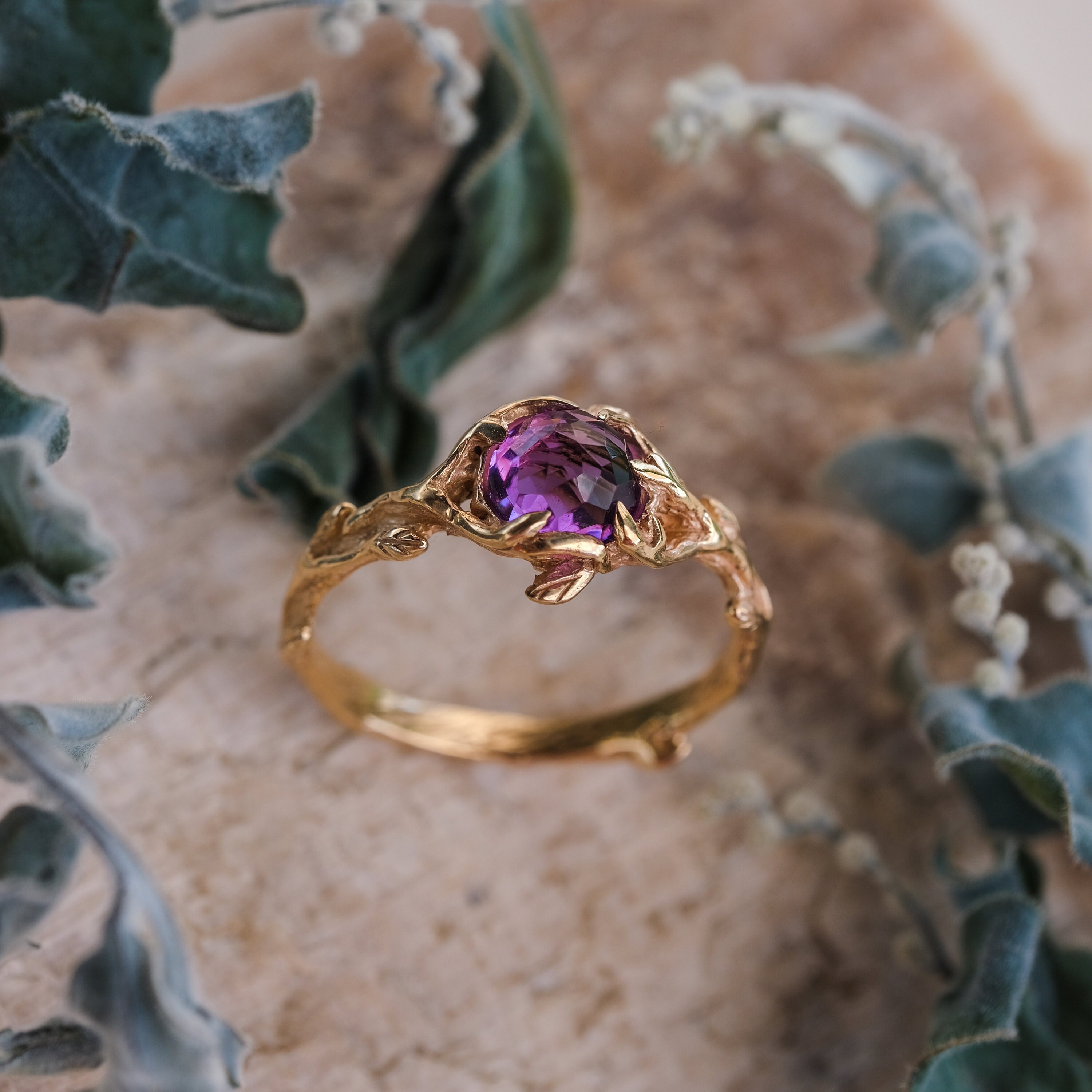 Amethyst Yellow Gold Engagement Womens Ring April Etsy